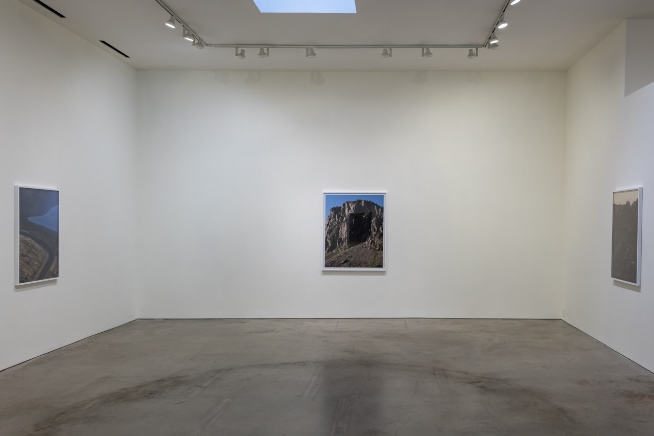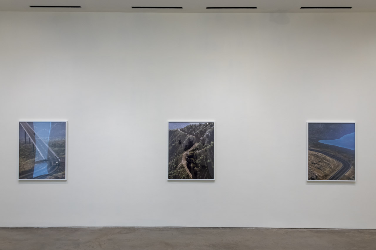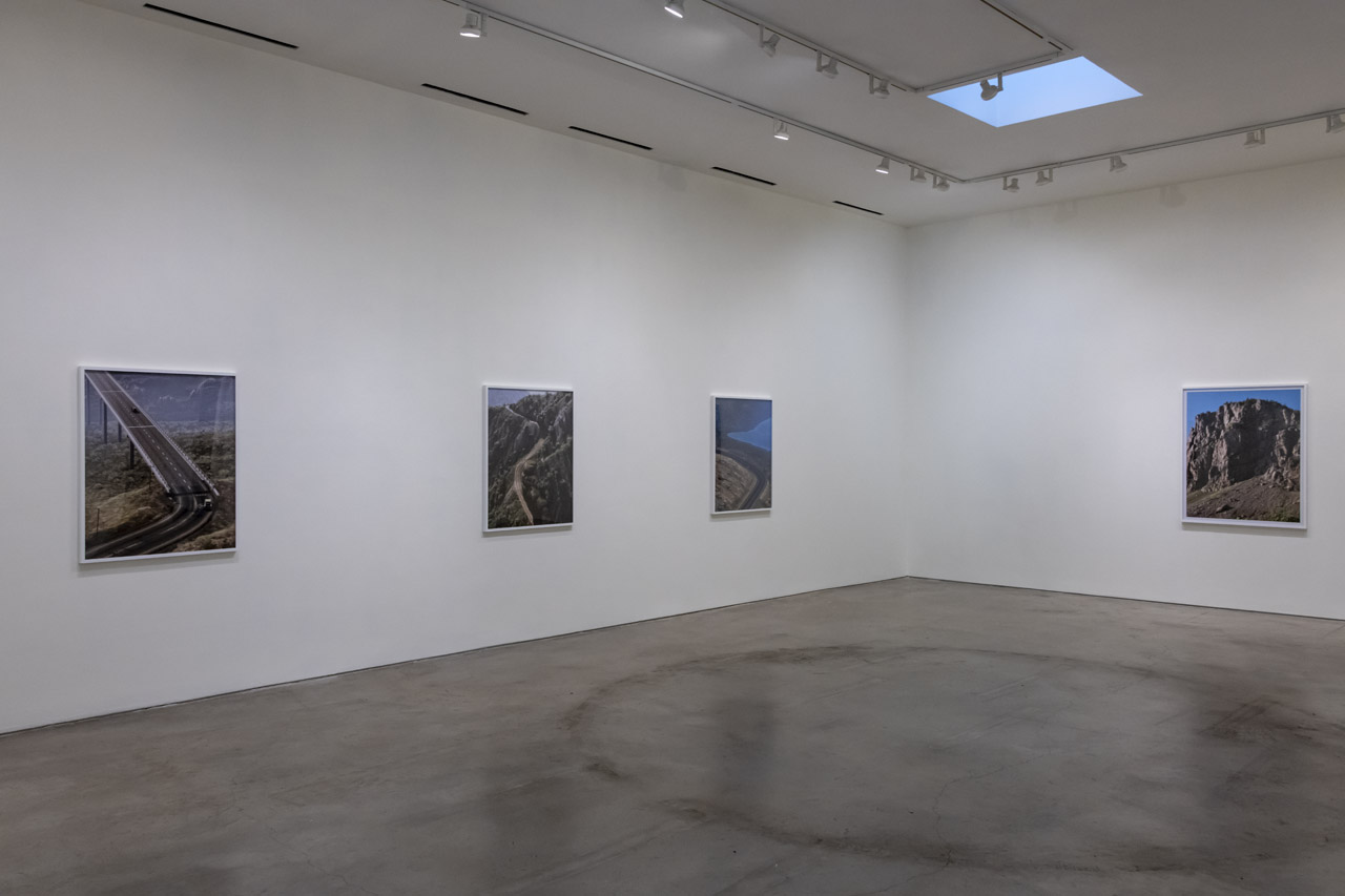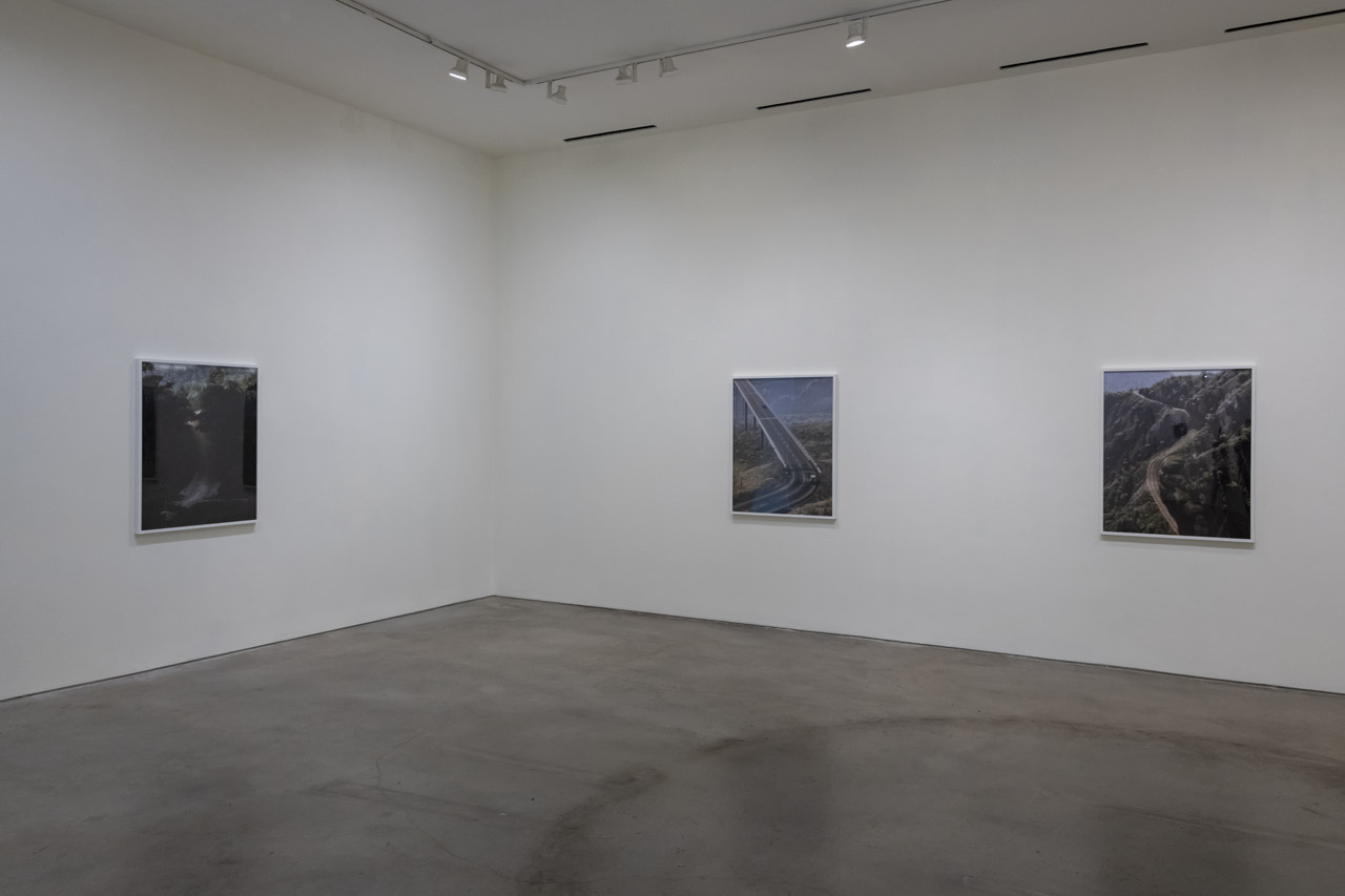 Additionally, Berry includes a single photograph taken from a road trip in Nova Scotia. Both the virtual photos and the physical one were taken while on a journey, both were captured in stages, combining dozens, or hundreds, of images for each picture. The only differences between the pictures are the places they were taken, the roads that were driven along to find them, and the lens through which the artist captured them. Hanging them together, Berry explores what draws them together as well as what sets them apart.